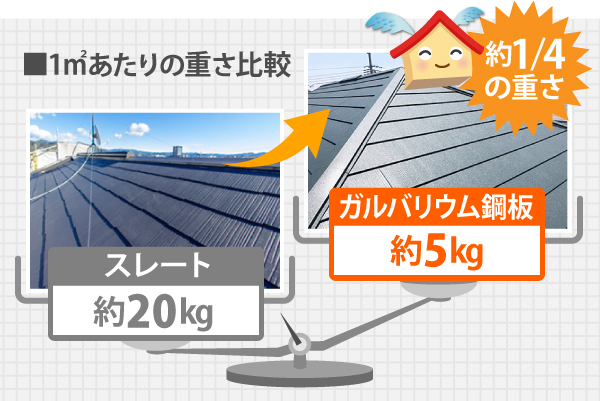 金属屋根はスレートの1/4程度の重量ですので、当然の流れとも言えますね。